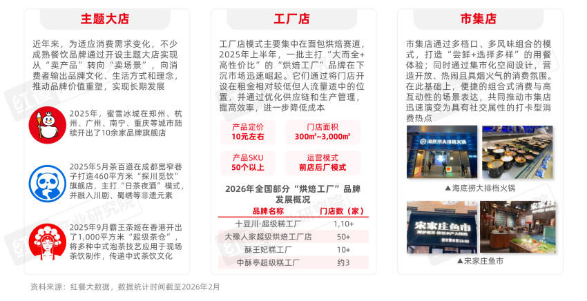 再具体到大店模式,有不少头部餐饮品牌纷纷布局。比如蜜雪冰城,据不完全统计,2025年其在郑州、杭州等城市陆续开出了10余家数百平的品牌旗舰店;另外海底捞也在2025年布局大店模式,在广州等地开出多家2000平的的大排档火锅,引发消费打卡热潮。