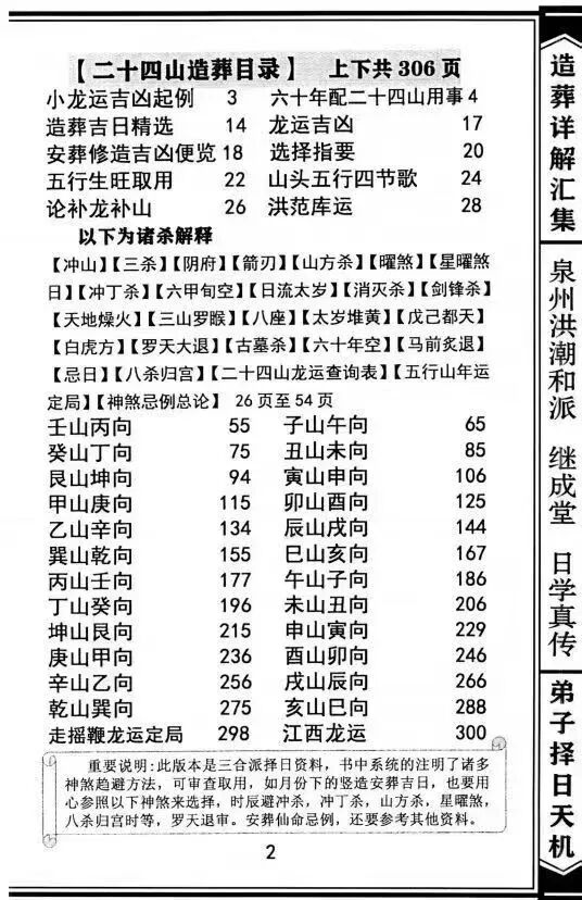 在中华传统风水堪舆文化传承脉络中,二十四山理论是理气派风水的核心根基,而聚焦造葬实操的典籍则是连接理论与实践的关键载体。《二十四山造葬汇集》作为一部系统整合造葬知识的风水专著,全书共308页、三册成套,核心围绕二十四山理论在阳宅建造与阴宅安葬中的应用展开,是风水造葬领域的权威汇集之作。该书将二十四山方位体系与造葬择日、理气布局、实操技法深度融合,系统收录造葬全流程的详细指引,既是风水从业者开展造葬业务的实用指南,也为民俗文化与风水史研究者探寻传统造葬礼仪的传承脉络提供了珍贵资料,兼具极高的实用参考价值与文化传承价值。