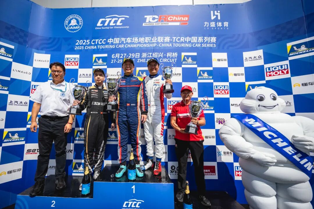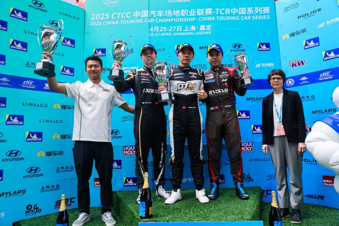 第二回合倒序发车,黄颖从第二排起步,起步瞬间便抢占内线守住领先位置,全程顶住后方车手的持续追击,最终以TCR中国锦标赛全场第五、挑战杯冠军的成绩冲线;胡衡在本回合保持稳定发挥,最终获得组别第11;刘洪志同样展现出追击能力,一路攀升至全场第15、组别第九。本站车队凭借三位车手的协同发力,成功斩获赛季首个车队总冠军,黄颖一冠一季两度登台,为整个赛季实现振奋开局。