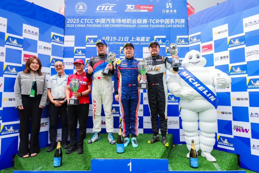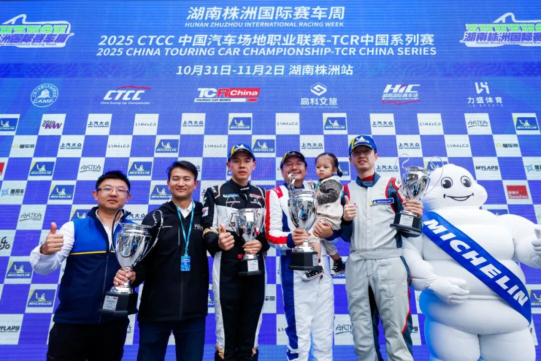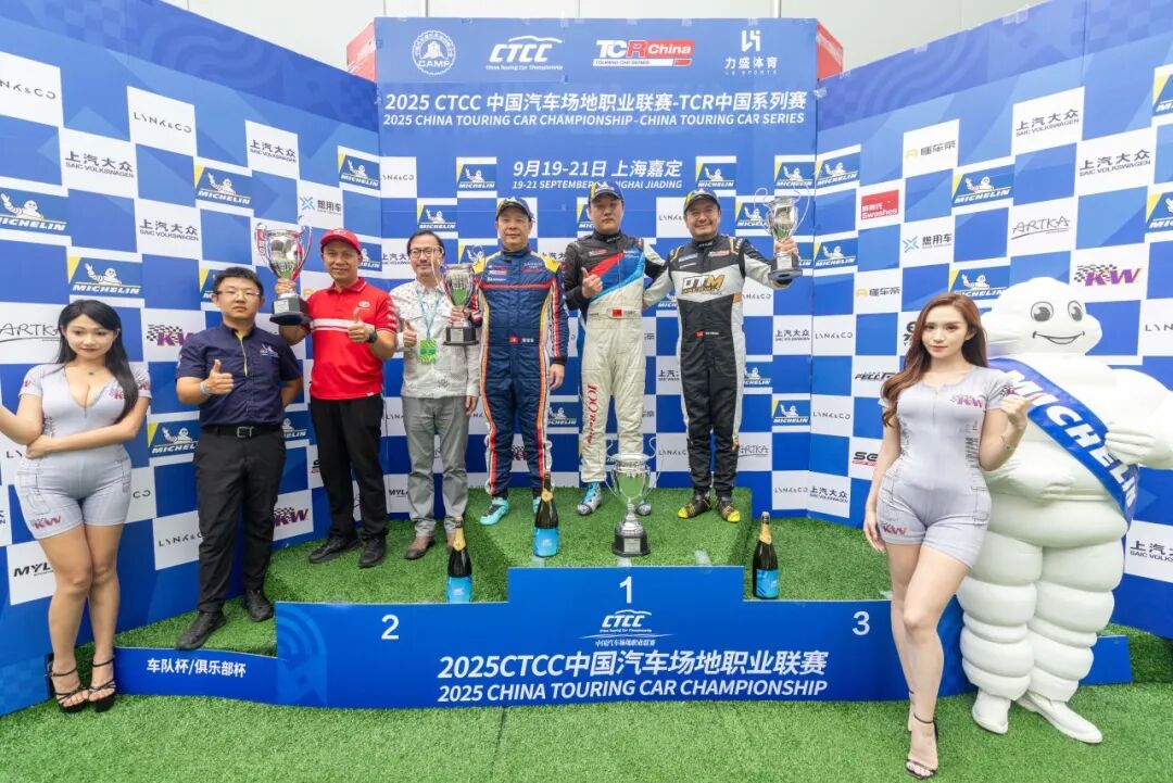 第二回合赛事遭遇半干湿路面,赛道抓地力不均,对车手控车与车队战术选择提出极高要求。胡衡与团队经过精准研判,果断选择雨胎策略,起步后便迅速拉开差距,最终以全场第二、组别冠军的成绩冲线,实现赛季两连胜;刘洪志从第17位发车后展现出极强的追击能力,全程完成10次关键超越,最终以全场第七、组别季军完赛;黄颖在复杂赛道条件下保持稳定发挥,最终获得组别第五。随着收官战落幕,胡衡成功锁定TCR中国锦标赛年度挑战杯亚军,黄颖斩获年度挑战杯季军,车队则斩获俱乐部杯亚军,圆满完成赛季目标。