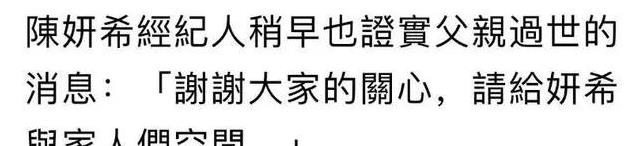 原来陈妍希的父亲真的去世了,经纪人还呼吁大家,给陈妍希和她的家人一些空间。