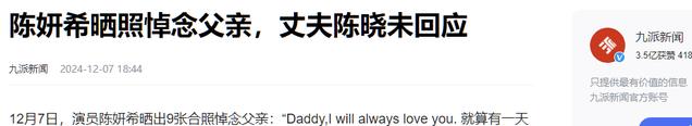 九派新闻:陈妍希晒照悼念父亲,丈夫陈晓未回应
