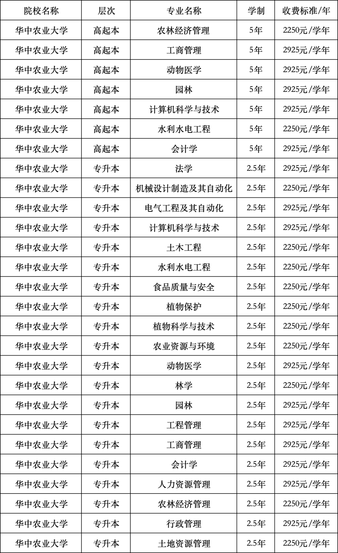 三、华中农业大学2026年成人高等教育拟招生专业