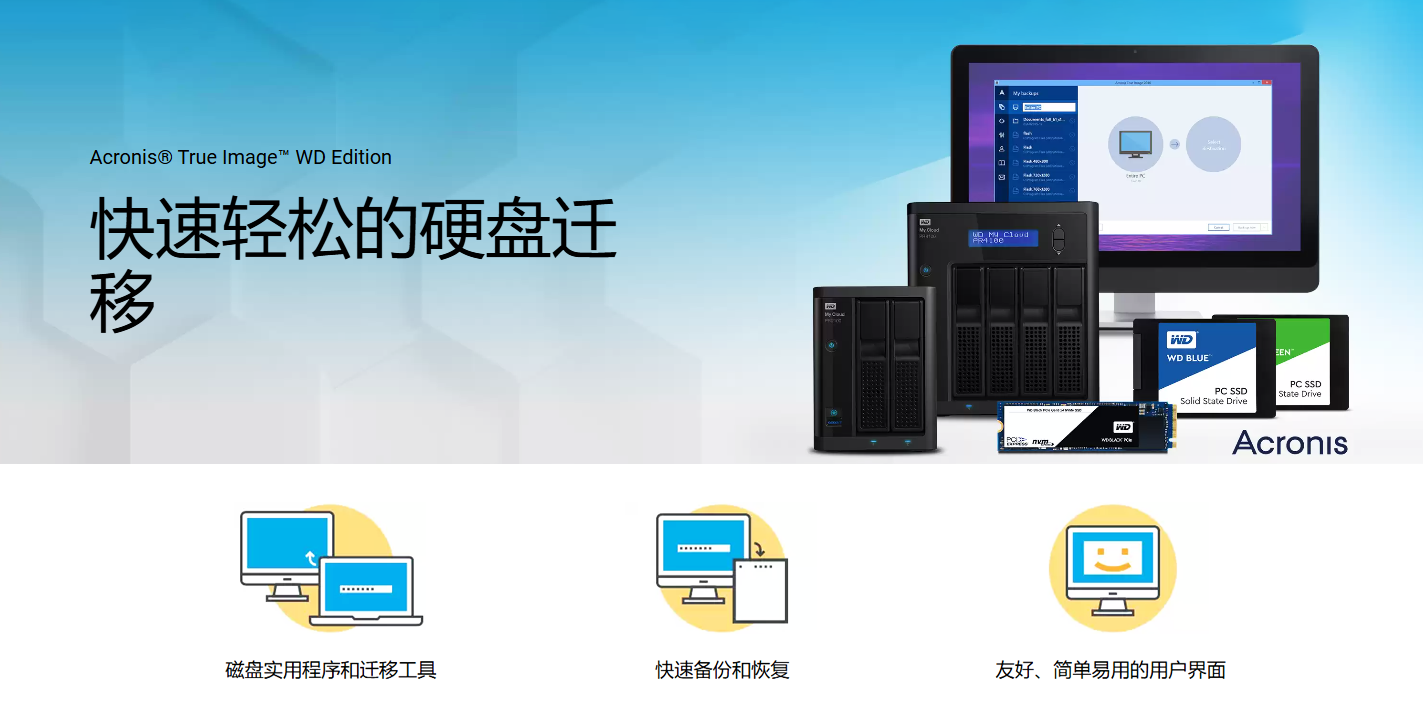 除了硬件和技术给力,西部数据还免费提供了Acronis True Image WD Edition备份软件。可轻松将操作系统、应用程序和文件从原有硬盘无缝迁移至新蓝盘。软件支持自动或手动模式下的系统备份与恢复,包含高级分区管理功能,可进行分区调整、合并、克隆等操作。其硬盘复制功能简化了数据迁移过程,实现无缝转移。