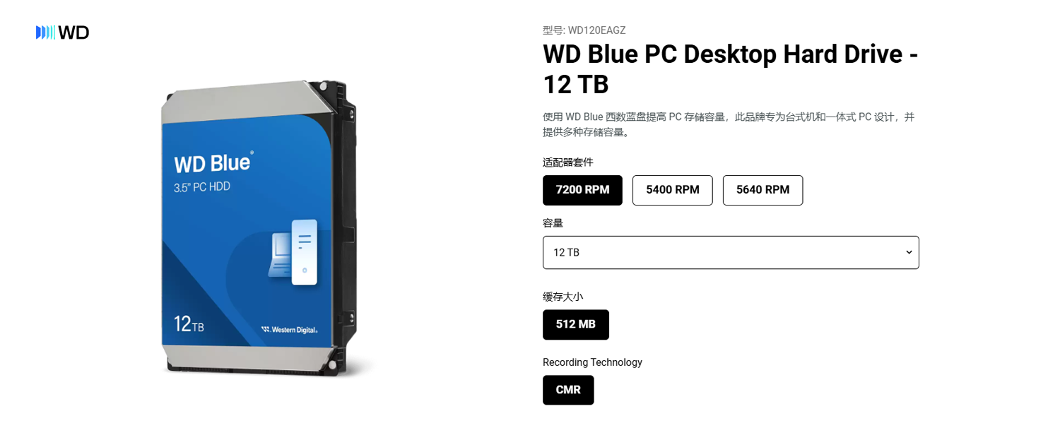有了12TB这么大容量,直接告别反复清理硬盘、来回倒腾文件的麻烦。无论是给全家建个私人影音库,还是为创意项目预留充足的存储周转空间,12TB容量都轻松安放你的数字内容并随时调取使用。从性能提升方面,12TB的蓝盘拥有7200 RPM的高转速和512MB大容量缓存,在数据的读取和写入速度也有显著提升,非常适合有更庞大的数据需求的玩家购买使用。