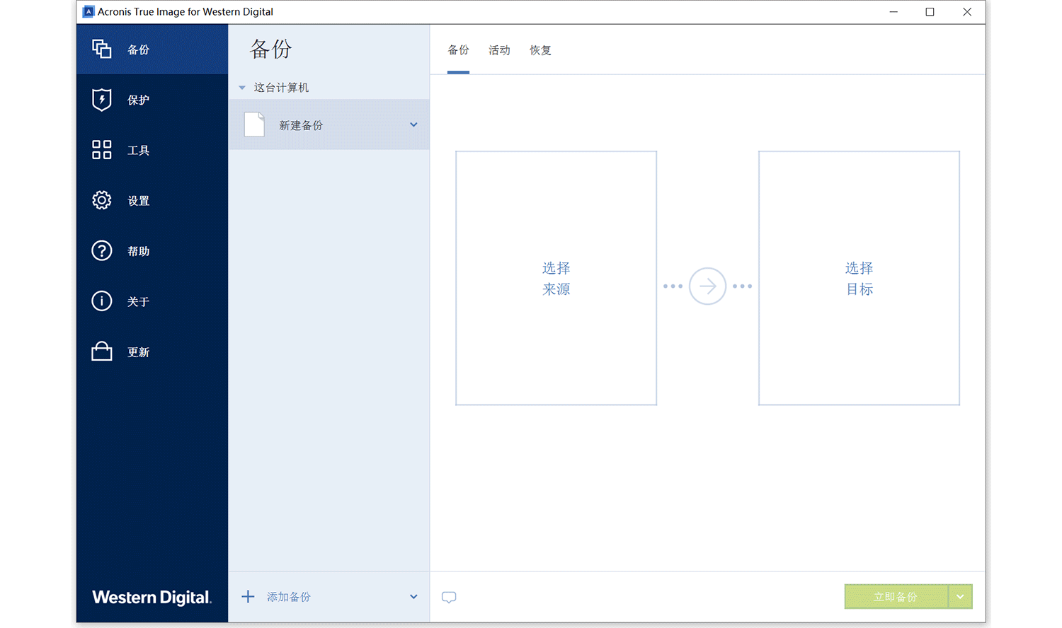 例如将数据备份至西部数据蓝盘:主界面点击“备份”—“新建备份”,选择需要备份的来源(整台电脑、某个分区或特定文件夹),将“备份目标位置”设为西部数据蓝盘,确认后点“立即备份”即可。直观界面降低了操作难度,无技术背景用户也能快速上手。