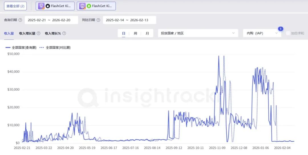 在这一背景下,已有开发者提前布局该赛道。FlashGet Kids上线于2023年5月18日,insightrackr数据显示,在2025年2月21日至2026年2月20日期间,该应用全球iOS与Android双端累计下载量达1124万次,同期内购收入突破297.4万美元。其中,印度地区贡献了142.8万美元的内购收入,约占全球总额的48%,接近一半,成为FlashGet Kids的最大市场。