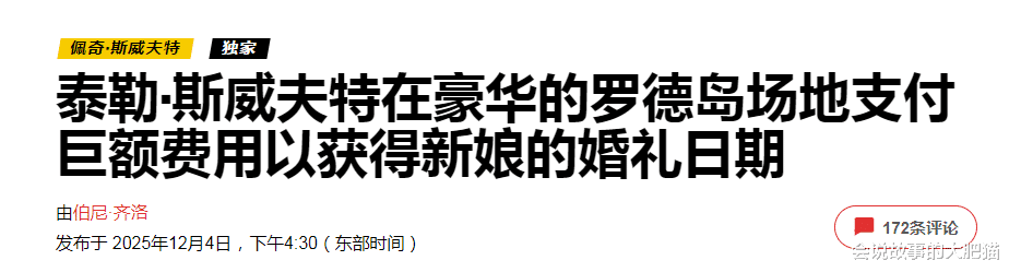 据悉,两人计划于2026年6月13日在罗德岛的海洋之家酒店举行婚礼。这一选址并非偶然——酒店距离霉霉在当地拥有的豪宅仅一步之遥,而那处房产正是她于2013年购入。