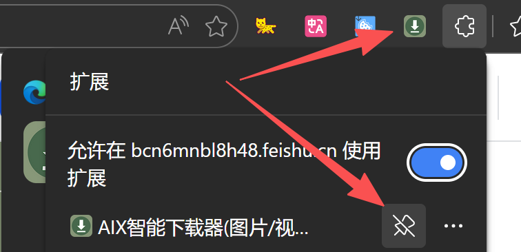 然后在浏览器右上角点击“扩展”图标——点击“固定到扩展”图标