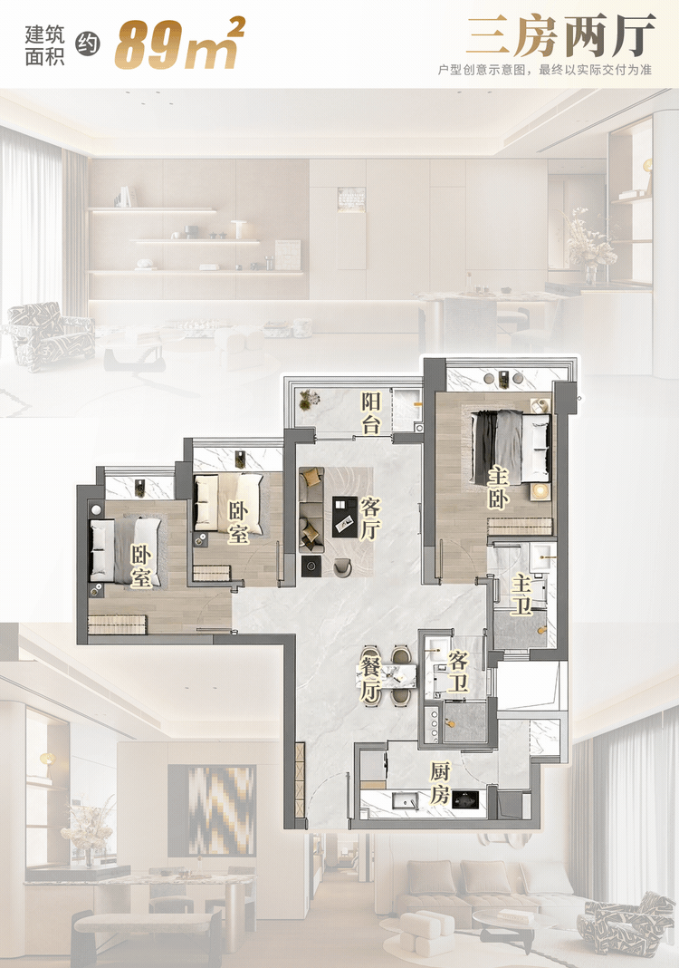 先来看建面约89㎡户型,这是新世界·天馥的超级断货王三房户型,也是改善最爱的全能单品。