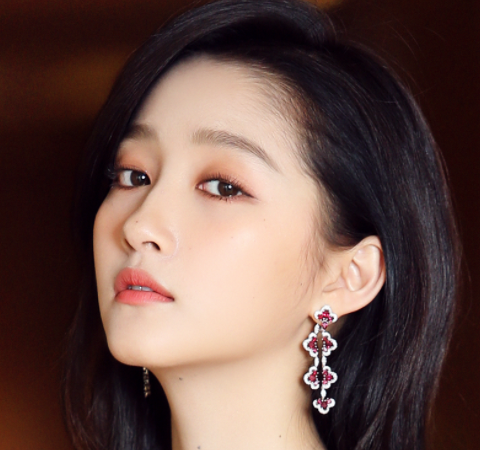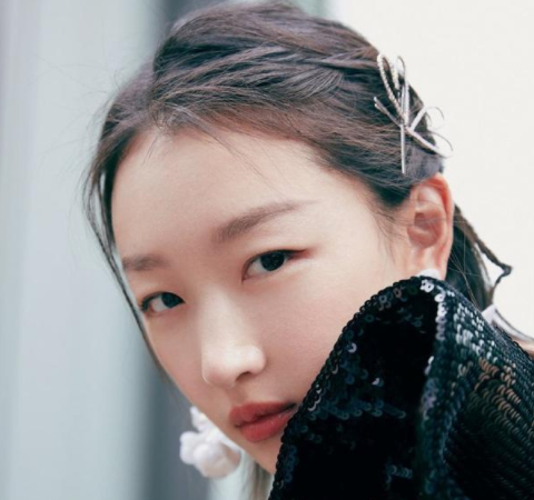 这张照片可以看出,关晓彤的眼睛属于细长的眼型,她的眼妆是用眼线笔在眼角中部划出一道暗影,然后再向前和向后延伸,形成一个圆形的 V形,以此弧度对细长的双眼显得更圆更萌。在完成了一个圆形的 V型卧蚕的影子线后,再用亮片完美的装饰,使眼睑中部,下眼尾和下眼头用淡灰色或棕色的晕染,形成一浅一深的层次,使卧蚕更加的有立体感,睛垂直扩大。