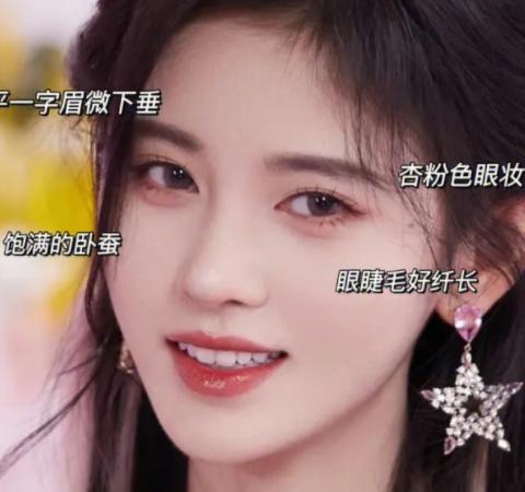 还有鞠婧祎的眼妆,她的卧蚕像扇面上的花瓣。属于眼睛宽度较小的女孩,重点是“前窄后宽”的暗纹,然后在眼角位置画上亮片,这样就能形成可爱的下垂效果,同时还能扩大眼睛的宽度,扩大眼睛的宽度。