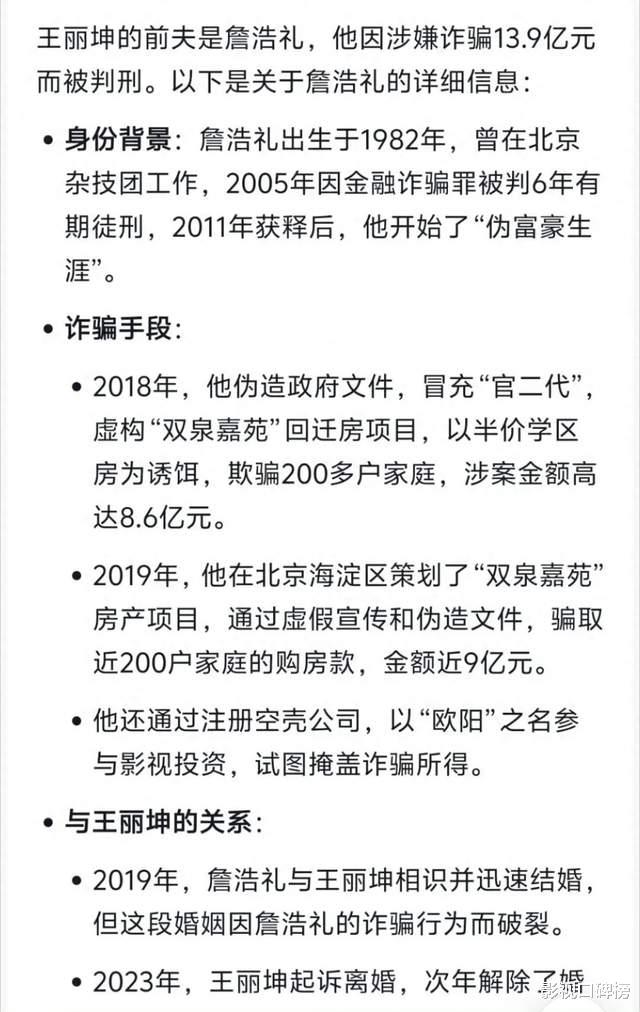 虽然王丽坤澄清自己毫不知情,但她是一个明星,又是她的前夫,公众形象必定是会受损!詹浩礼东窗事发后,2023年王丽坤与他划清界线,向法院起诉离婚。