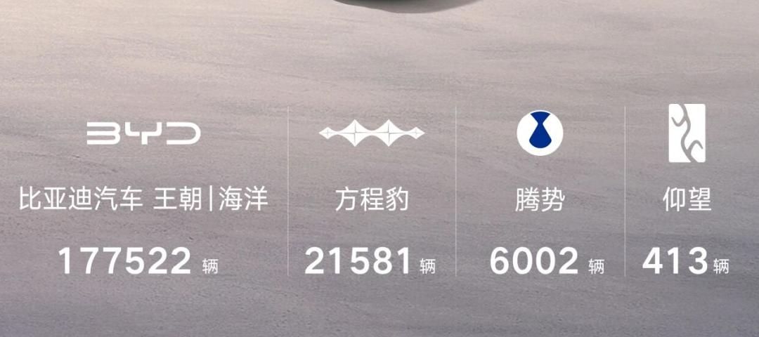 具化到品牌上,主力仍是王朝和海洋网,销量达17.8万台,表现最好的单一品牌则是方程豹,其销量为21581辆,虽然同比增长,但是环比下降58%,腾势仅贡献了6002辆的增量。