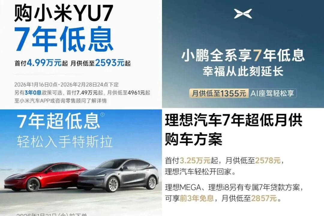 国内品牌紧随其后,小米汽车、理想汽车、小鹏汽车、吉利汽车、东风奕派、蔚来等超10家车企跟进,将车贷周期从传统的三年拉长至七年,不少车企还提供期限不同的0息贷款方案。