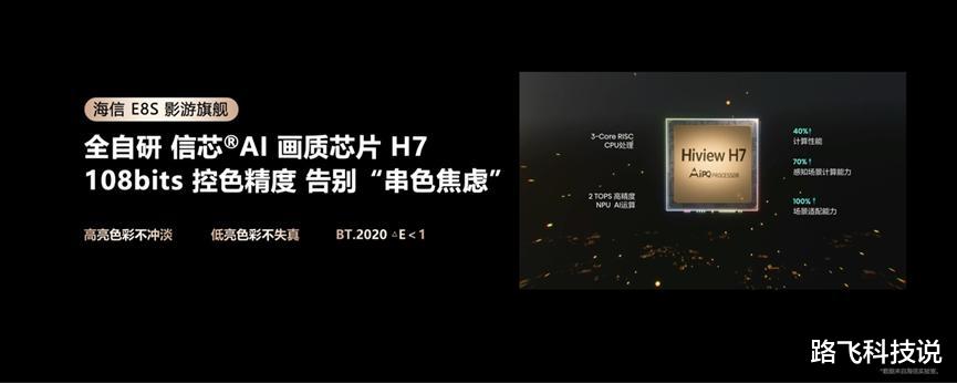 除了光源技术的革新,海信还为E8S系列搭载了基于RISC-V开放架构的信芯AI画质芯片H7。该芯片首创三维光色同控技术,能够毫秒级同步调控三原色的强度与配比,实现了对色彩和光线的精准控制。