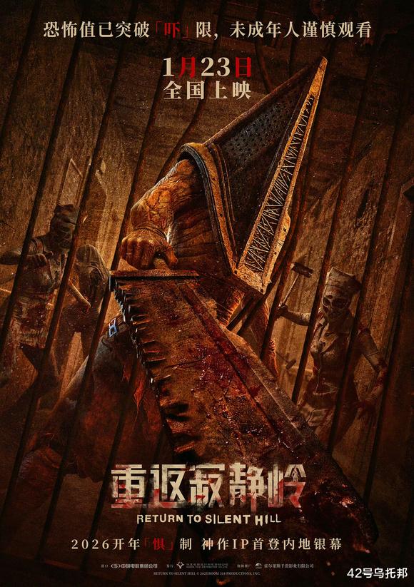 噩梦来临!知名恐怖片“寂静岭”的新一部电影《重返寂静岭》内地定档明年1月23日上映,同步北美,为该系列影片首次内地上映,定档海报中三角头手持铁制大刀,步步逼近。