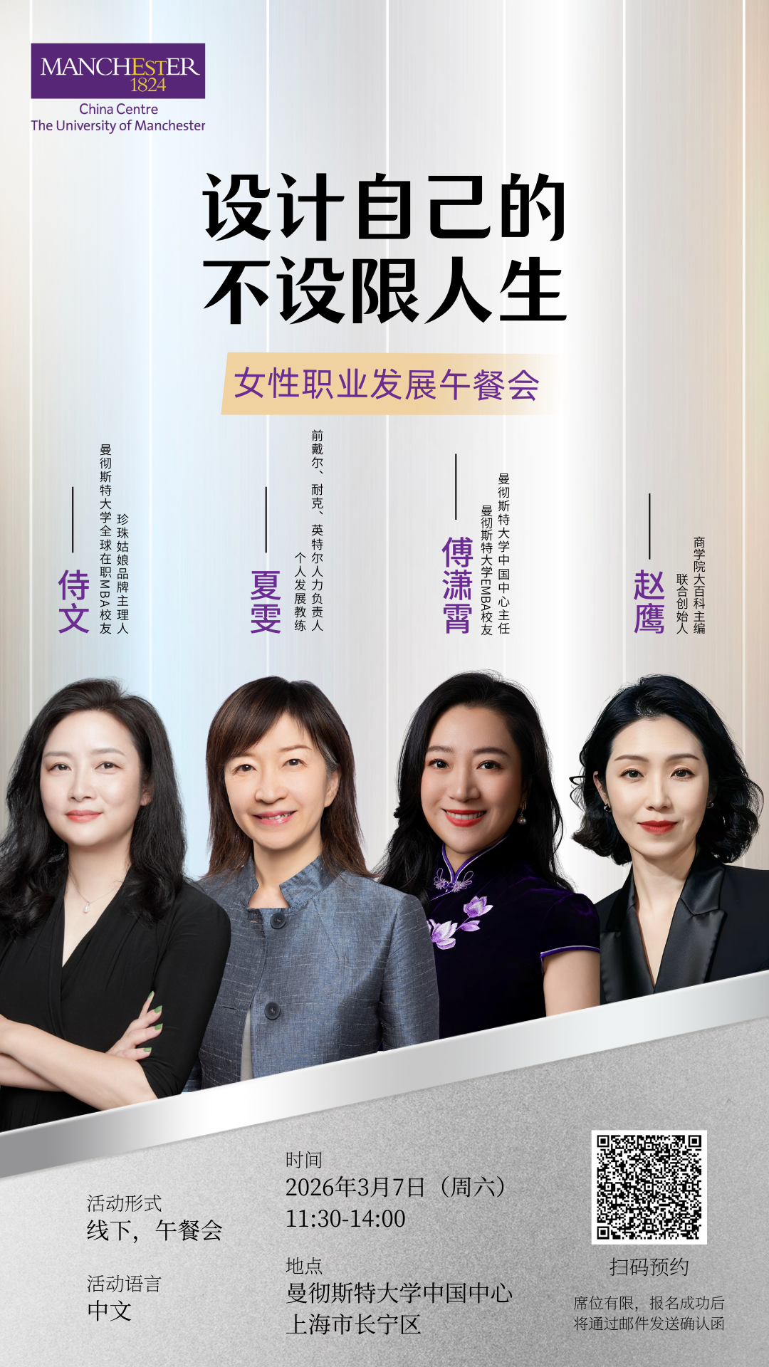 这不是一场制造焦虑的讲座,也不是简单讨论“读不读 MBA”。这是一次关于女性如何在复杂世界里,掌握主动权的深度对话。3月7日,在曼彻斯特大学中国中心,我们一起思考、一起对话、一起设计未来。