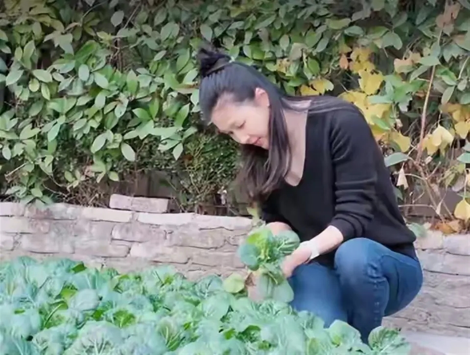 当年清丽脱俗的女演员童蕾,如今45岁了,穿着毛衣蹲在菜地里摘黄瓜的样子,和十几年前荧幕上的模样判若两人。