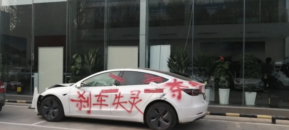 但是,这不是该女子初次维权,今年2月事故发生后,该女子曾多次将车头变形的事故车,堵在特斯拉门店,车上伴随黑色或红色的“刹车失灵”大字喷漆。