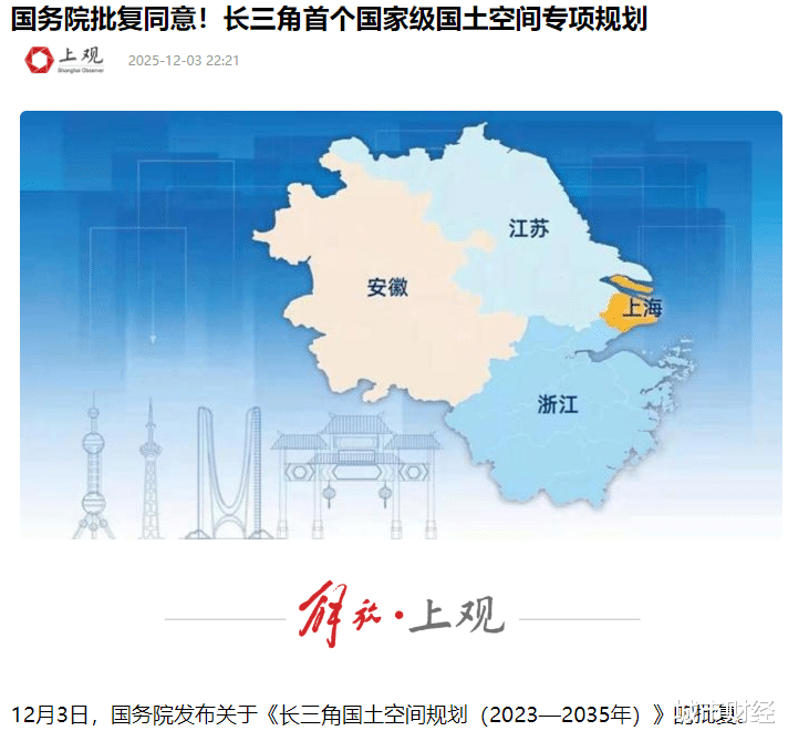 12月3日,国务院批复了《长三角国土空间规划(2023—2035年)》。
