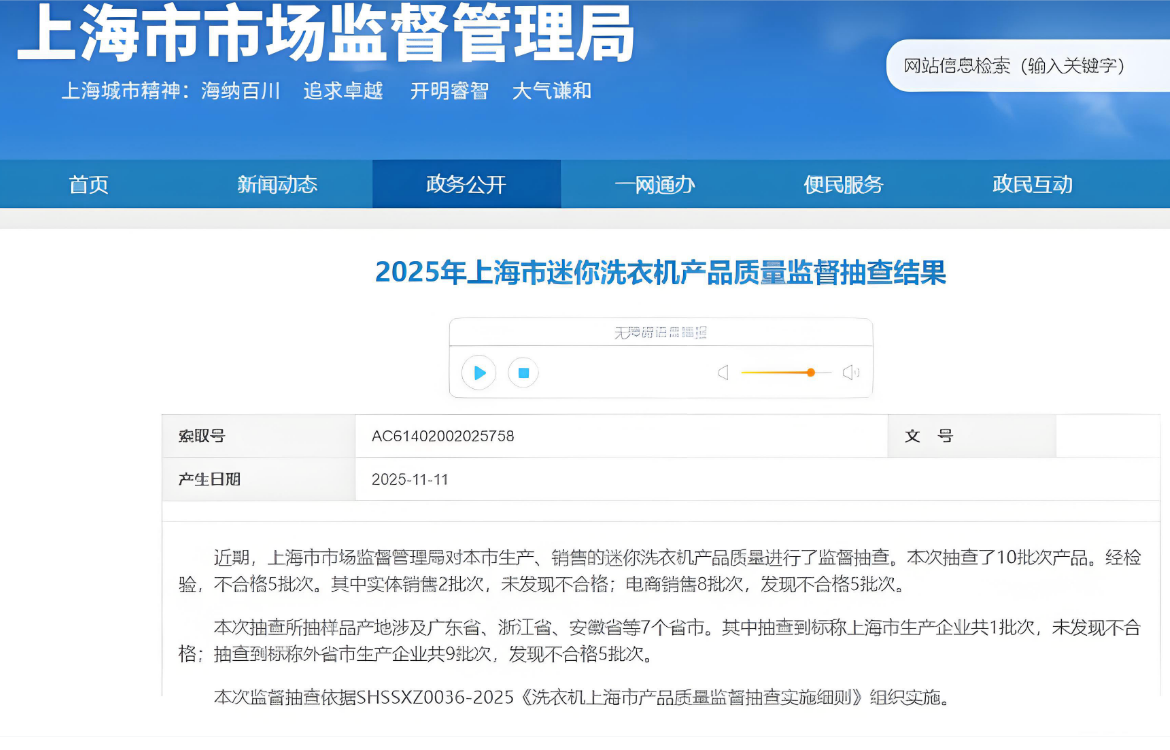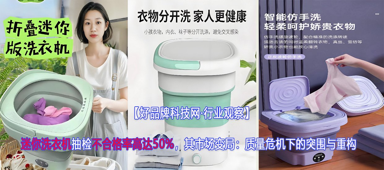 【好品牌科技网·行业观察】上海市市场监督管理局在11月份公布的抽检结果犹如一记警钟——10批次迷你洗衣机中5批次不合格,抽检不合格率高达50%,尤其是电商平台杂牌产品成重灾区,标志说明、电源安全、辐射骚扰等硬伤频发,更有两款折叠洗衣机虚假标注认证标志。这一数据撕开了迷你洗衣机繁荣表象下的结构性困境:当“智商税”争议与价格雪崩并存,当多筒分区洗衣机强势崛起,这个曾被寄予厚望的细分市场正站在十字路口。