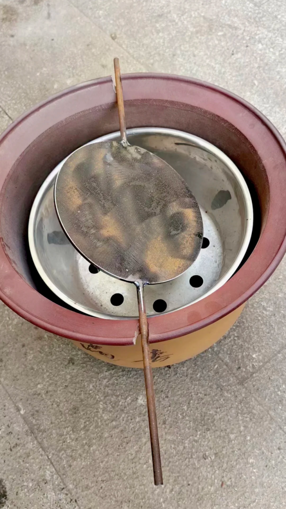 旧花盆也能满足养花人的围炉煮茶仪式感。在花盆里放上炭盆,再加上烤网,一个简易的围炉煮茶就成了。