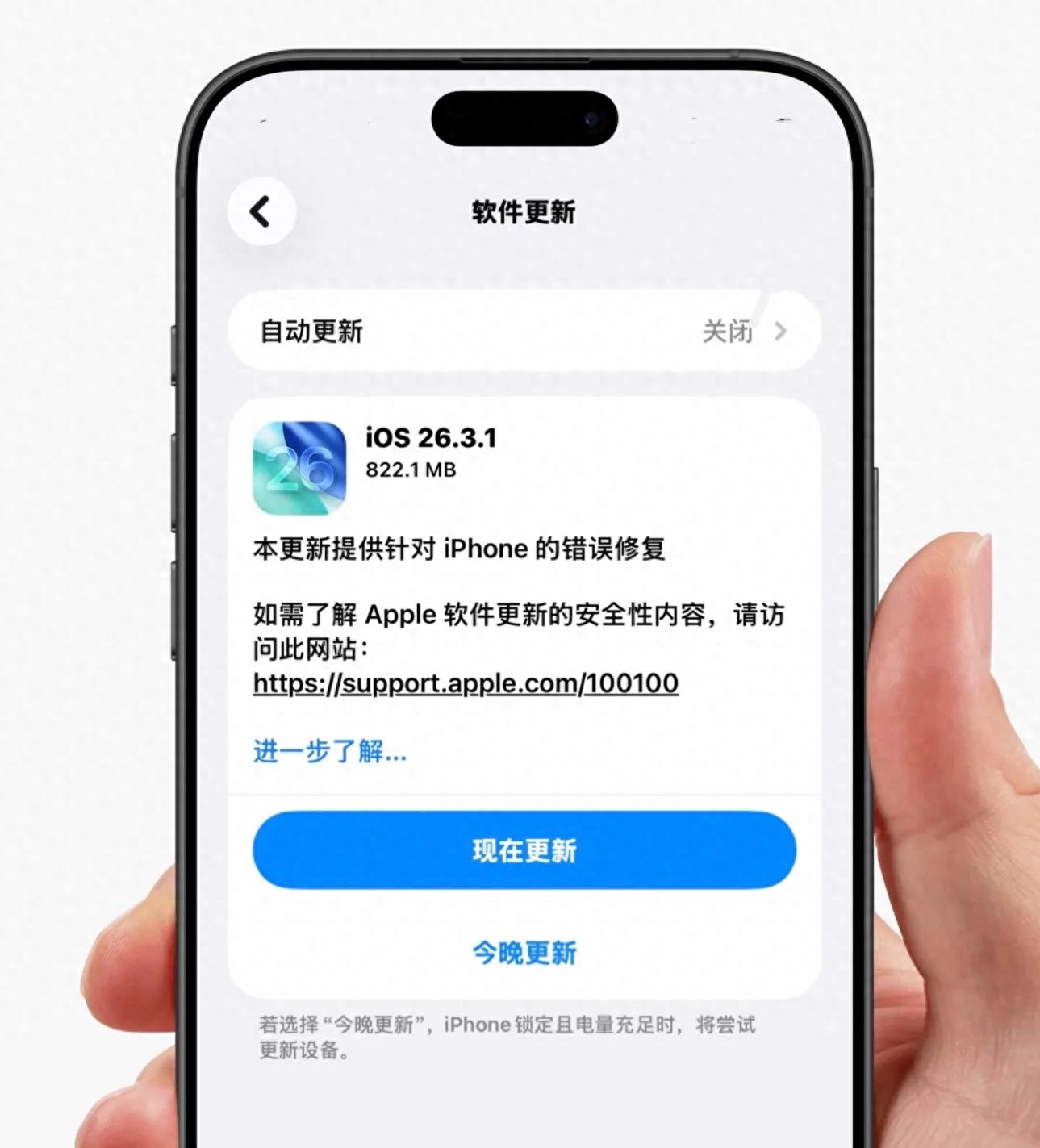 正式版系统更新变化此次iOS 26.3.1 正式版更新主要提供针对iPhone的错误修复;