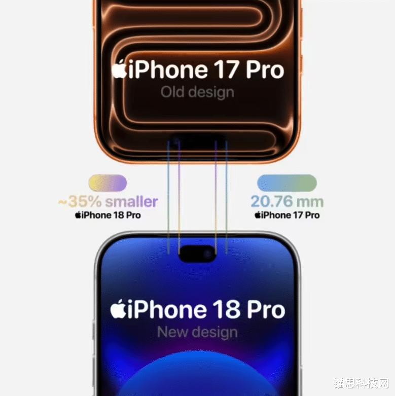 外观设计方面,iPhone 18 Pro系列最显著的变化是灵动岛区域开口的精简。其开口宽度从现款的20.76mm缩短至13.49mm,缩减幅度达35%,更接近“全面屏”视觉效果。苹果最终确定沿用居中开孔方案,推翻了此前流传的“左上角单挖孔”传闻,既保持了设计美学的一致性,又通过缩小开孔提升了屏占比。