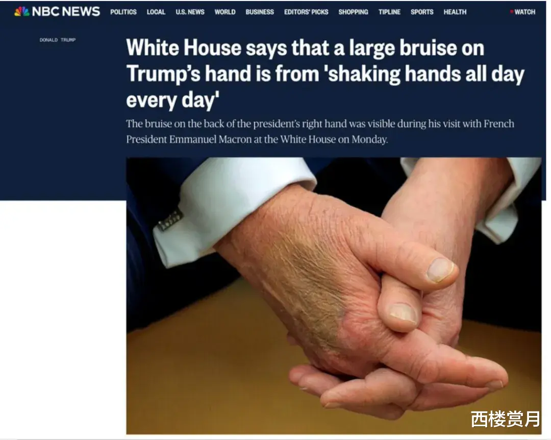 白宫表示,川普手上的瘀伤是因为他整天工作与很多人握手造成的: