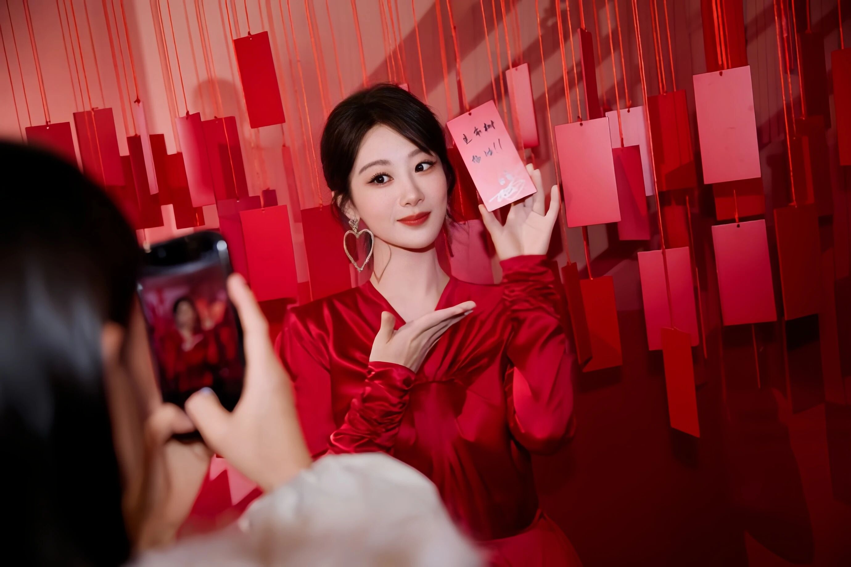 手机翻到杨紫这组新年图的时候,我正靠在床头刷着日常。本来只是随手划拉着屏幕,结果这张红裙子配老宅子的照片,一下子就把我目光定住了,手指都不自觉停了下来,盯着看了好半天。