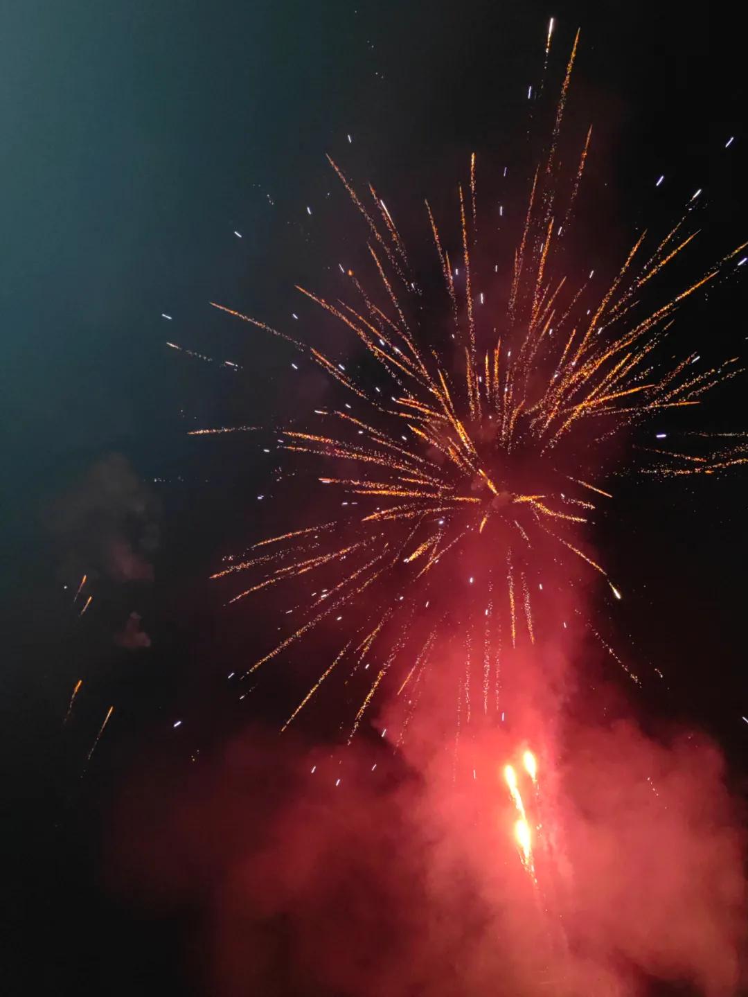 可以说除夕傍晚的鞭炮只是一个开始,放完鞭炮,再点两响,最后是放烟花。