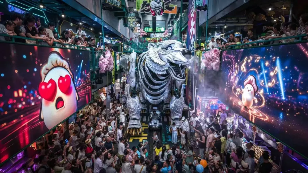 文旅科技企业也在为传统文旅的革新升级注入力量。例如,大连博涛文化科技集团(简称“博涛科技”)打造的大连熊洞街、淮北夔牛天街等,将神兽IP与城市文化深度结合,通过“尖叫美学”“情感化巨兽”为城市老旧工业遗存赋以文化和旅游的能量。