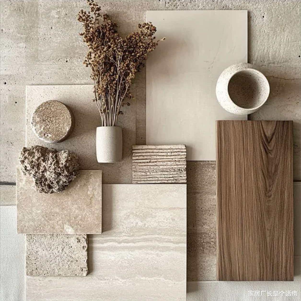 天然材质是加分项:真实的木头纹理,手工烧制的陶瓷,一束真实的干花...这些自然或者带手工制作的不完美物品,是机器复制不了的,它们的存在会赋予空间深层温度。