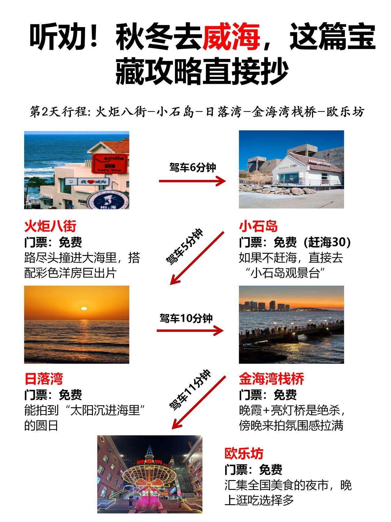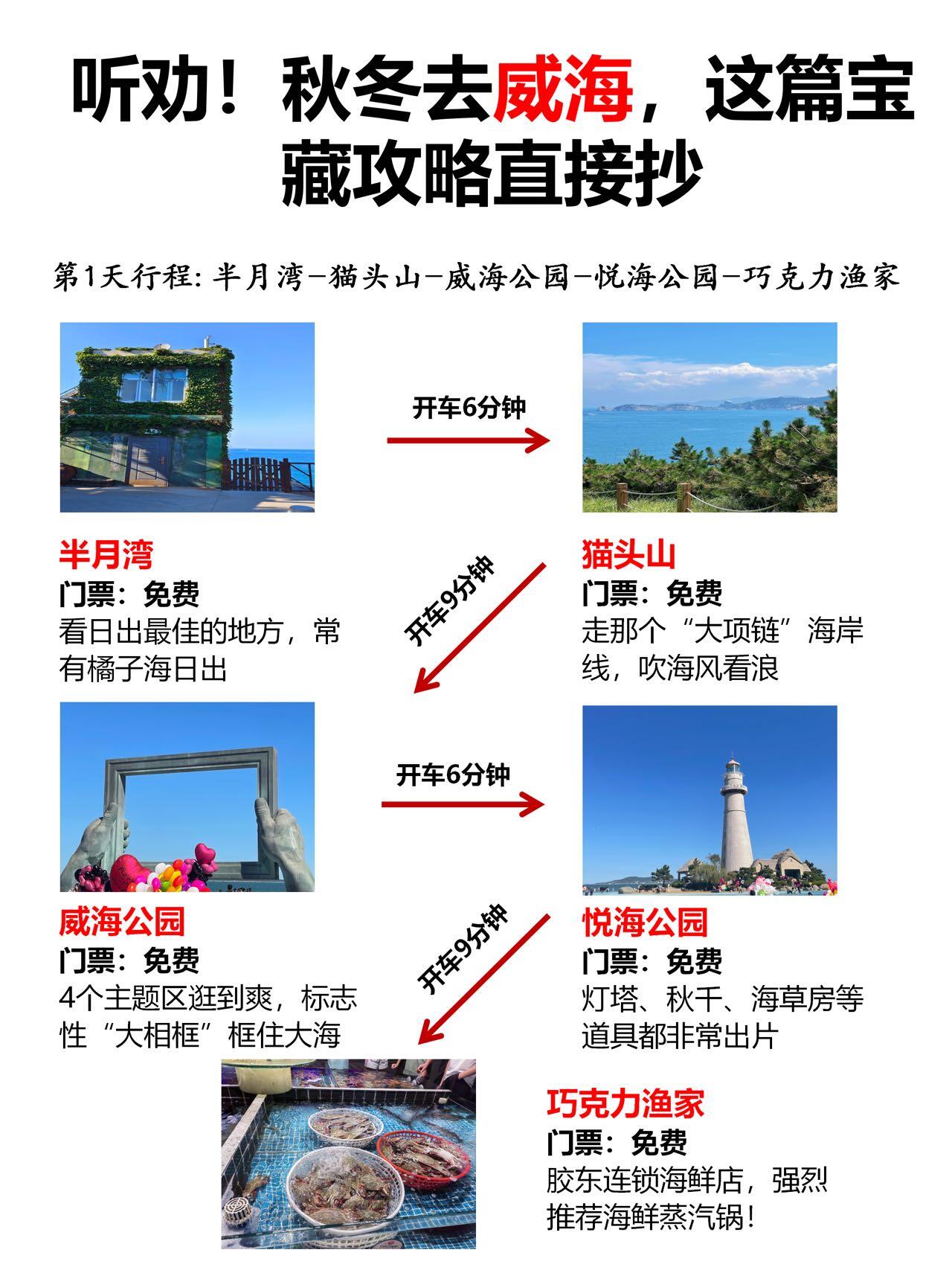 海边基本没人,想怎么拍就怎么拍,不用躲游客;威海住宿直接便宜大半,海鲜还贼肥美(海参、海蛎子全是当季鲜货)!