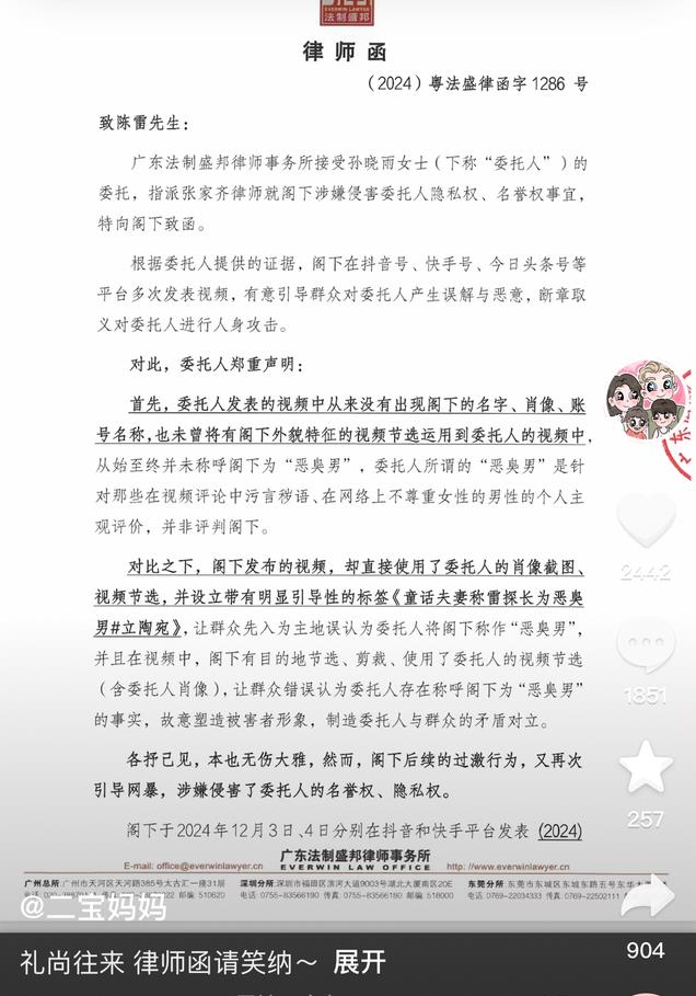 雷探长表示,二宝妈妈的回应基本上都是在转移话题,包括所谓的侵犯名誉权、肖像权等等。