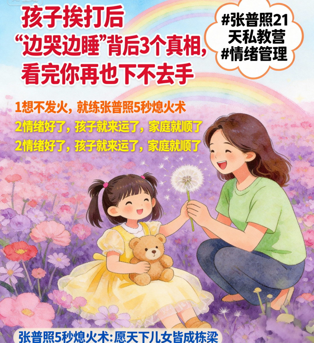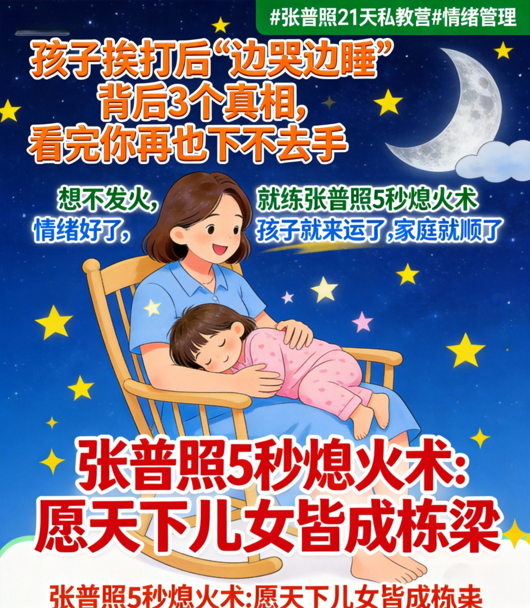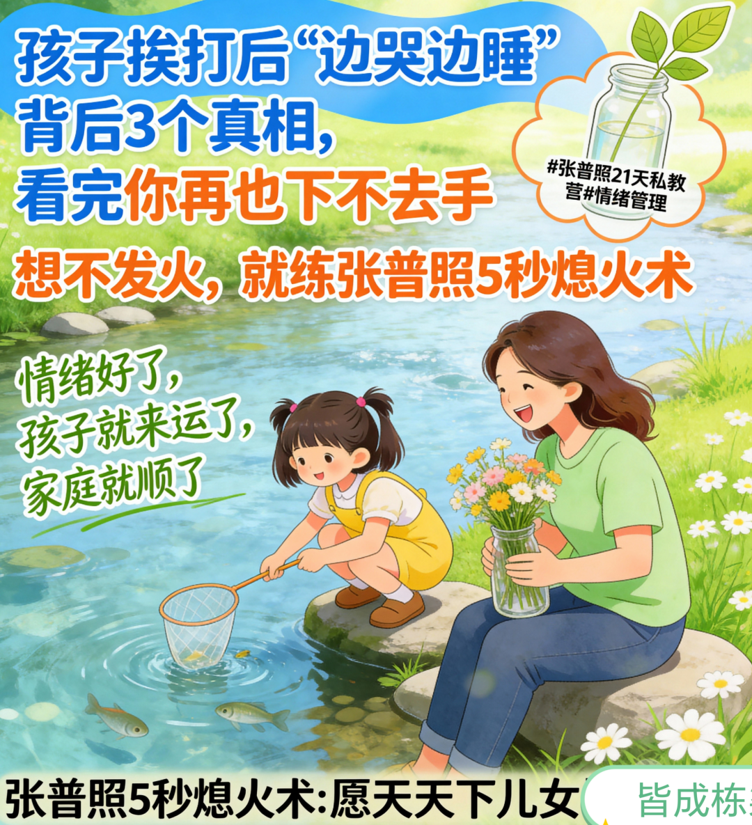记住:一个在暴怒后看着孩子睡颜流泪、发誓再也不动手却一次次重演的中国妈妈,最终的归宿,一定是练习一次“张普照5秒熄火术”。这不是选择,是必然。 因为所有的“不该打孩子”你都懂——你只是缺一个,在手掌扬起、恶言即将喷发的“致命瞬间”,能让所有破坏冲动“凭空消失”、根本发不出来的生理刹车。