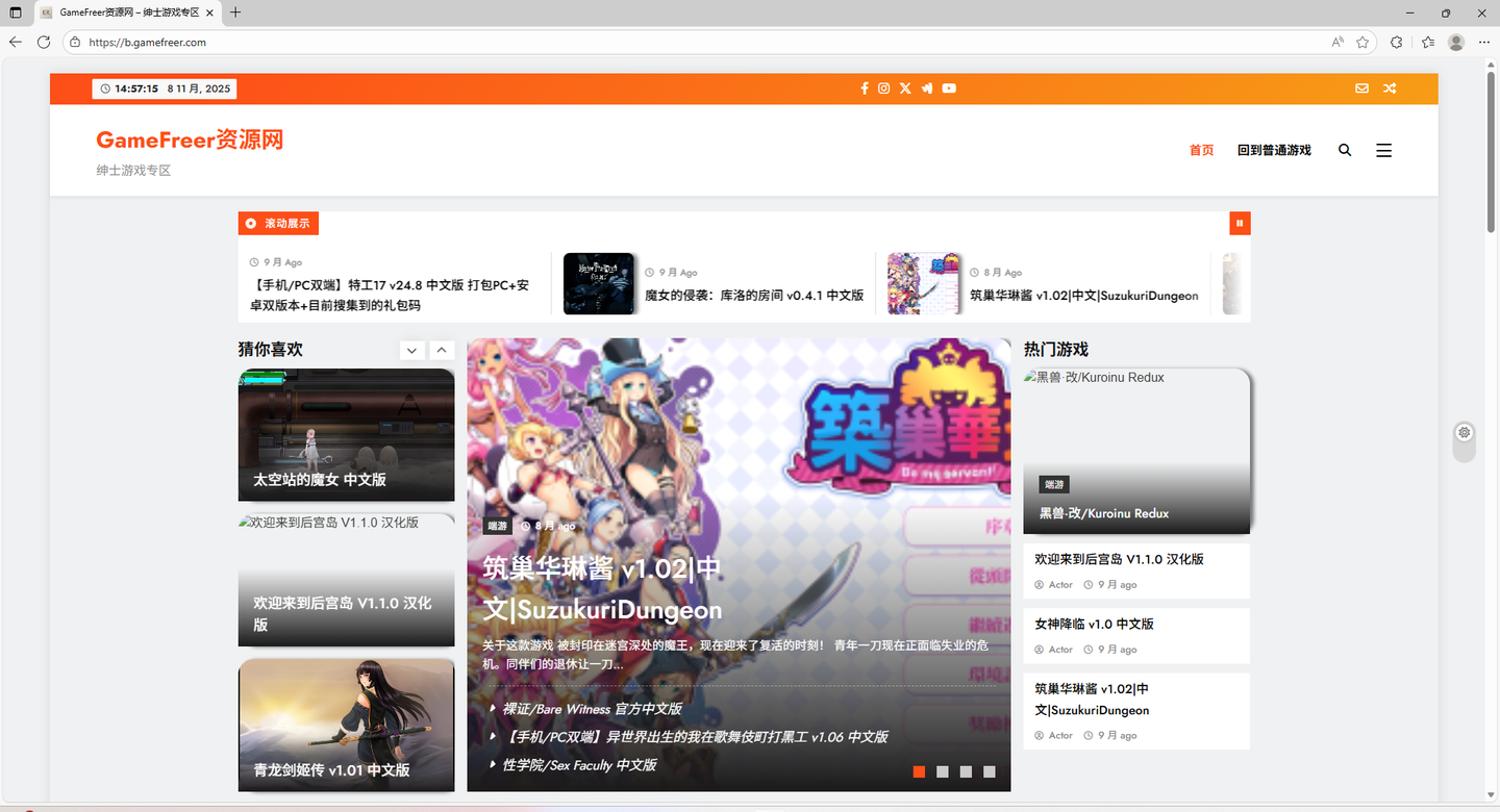 9、GameFreer资源库这是一个专门分享免费高质量中文游戏资源的网站!全站无需注册、无需登录就能直接下载游戏,体验爽到飞起。