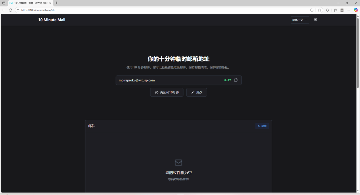 3、10 Minute Mail这是一个可以一键生成临时邮箱的网站。每次进入网页就会自动生成一个随机邮箱,有效期10分钟,专门用来接收各种验证邮件。像你平时注册一些不太放心的网站或者app担心个人邮箱会被滥用或者塞满垃圾邮件,用这个临时邮箱就完全不用操心了。如果验证码没收到,点一下这个按钮就能再延长10分钟。邮件一到就能立马查看和点击链接,非常方便,完全不用注册,不留任何隐私信息,安全性拉满,赶紧去试试吧。