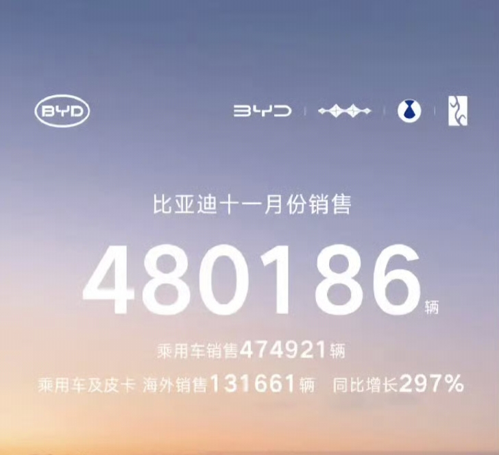 11月新能源汽车市场的“顶流”还是比亚迪!单月480186辆的销量成绩单一出炉,直接刷新行业认知。而其中最亮眼的,当属海外市场297%的同比飙升,131661辆的单月海外销量,直接刷屏各大社交平台。