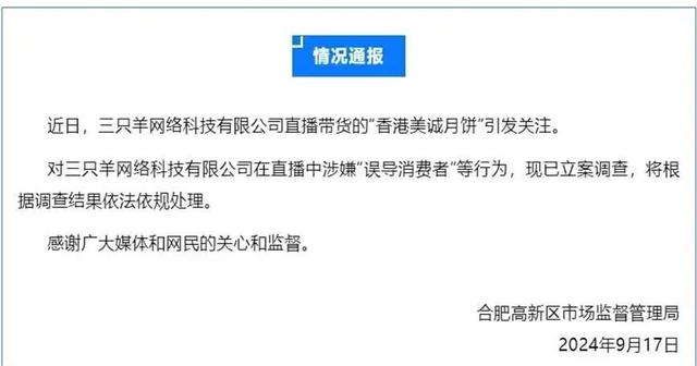 合肥多部门联合调查:小杨哥月饼事件或将迎来终章