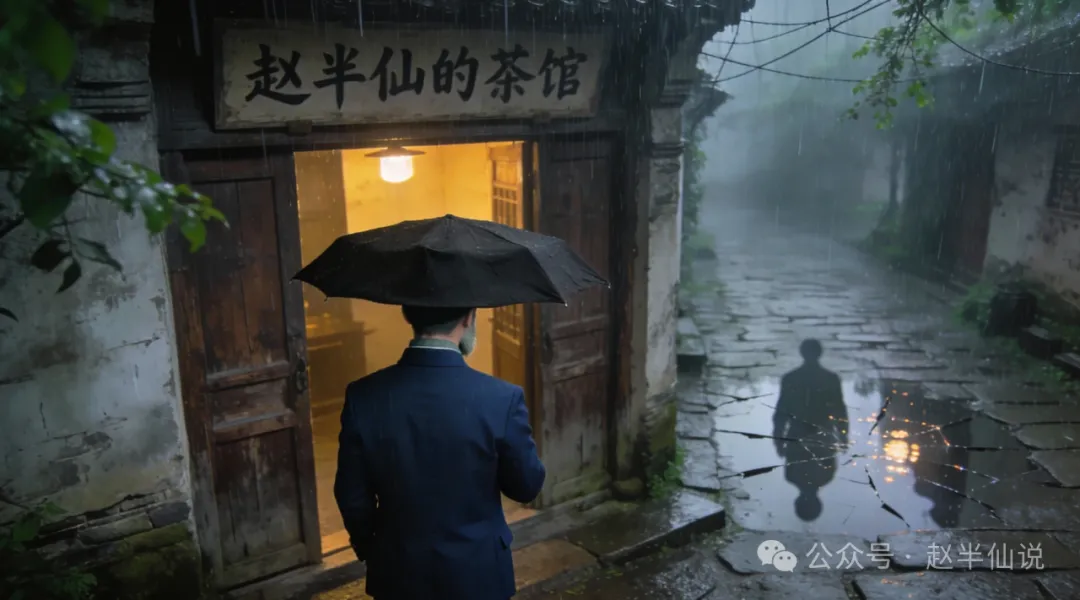 茶馆里静下来,只剩雨打屋檐的滴答声,细细密密,像在数着时光。