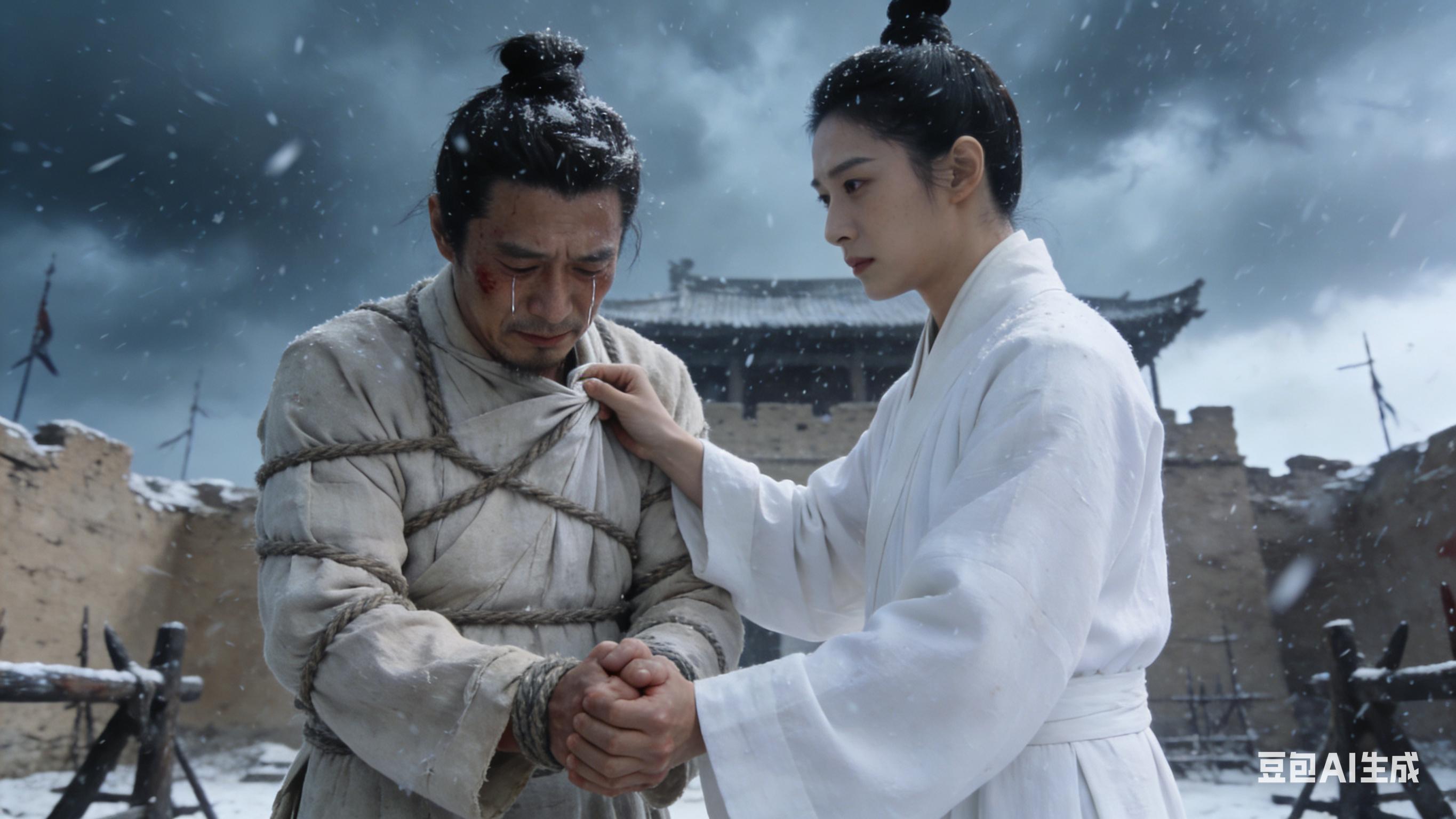 行刑那日,阴云密布,寒风如刀。王衍被押至刑场,看着身边神色平静的金飞山,泪水决堤。金飞山为他理好凌乱的衣襟,擦去他脸上的泪痕,轻声道:“陛下,臣妾不悔。”