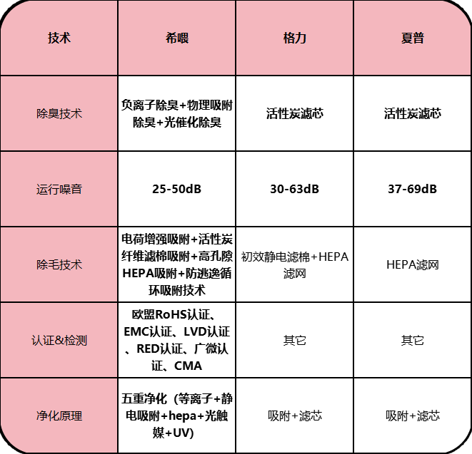 希喂净化协同链路最完整;格力配置全面、表现稳妥;夏普满足日常基础需求。家中有敏感人群、看重长期稳定性,优先选择主动模块更强、协同更好的机型。