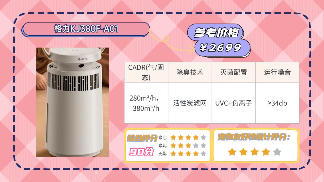 宠物空气净化器品牌排行榜前十名主推二、格力KJ380G-A01