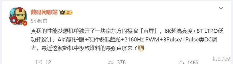 据数码博主数码闲聊站爆料,性能梦想机真我GT6将有一个“独家首发的大招”,那就是「纯直屏」和「超百瓦硅负极大电池」,金属中框和玻璃机身也会有,认为这真我GT6的配置是近期的新机里面的独一份。