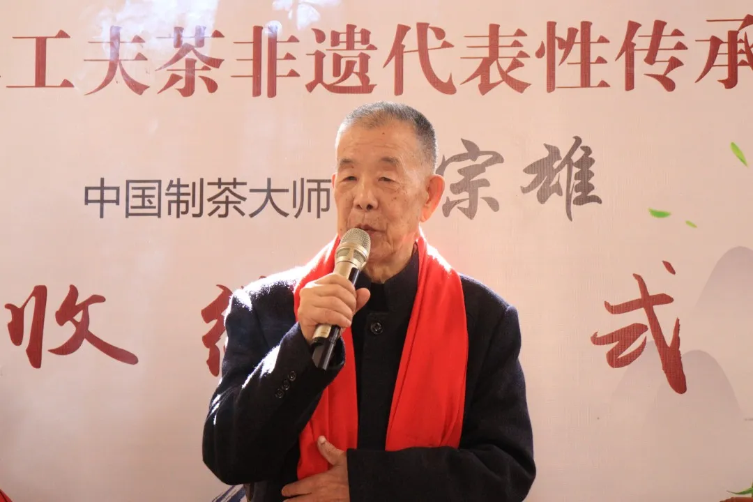 “坦洋工夫,名扬中外,历史悠久,技艺精良……”,福安市茶产业发展领导小组副组长陈灼生作为此次收徒拜师仪式的见证人代表,宣读了见证词,并表达了对坦洋工夫技艺传承的期待与祝愿。