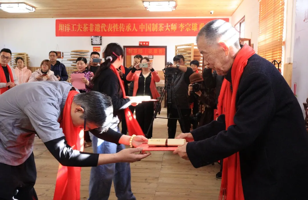 11月10日,中国制茶大师李宗雄收徒拜师仪式在福安市坦洋工夫茶非遗传习所举行,这场师承大会上,展现了福安坦洋工夫制茶技艺的延续与坚守。