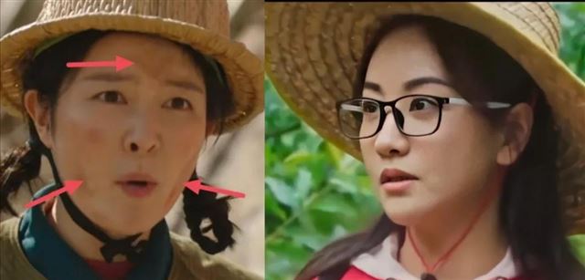 为了让观众感受到她在山上与泥巴石头打交道,偶尔会在脸上涂点深色粉底液充当泥土灰尘。