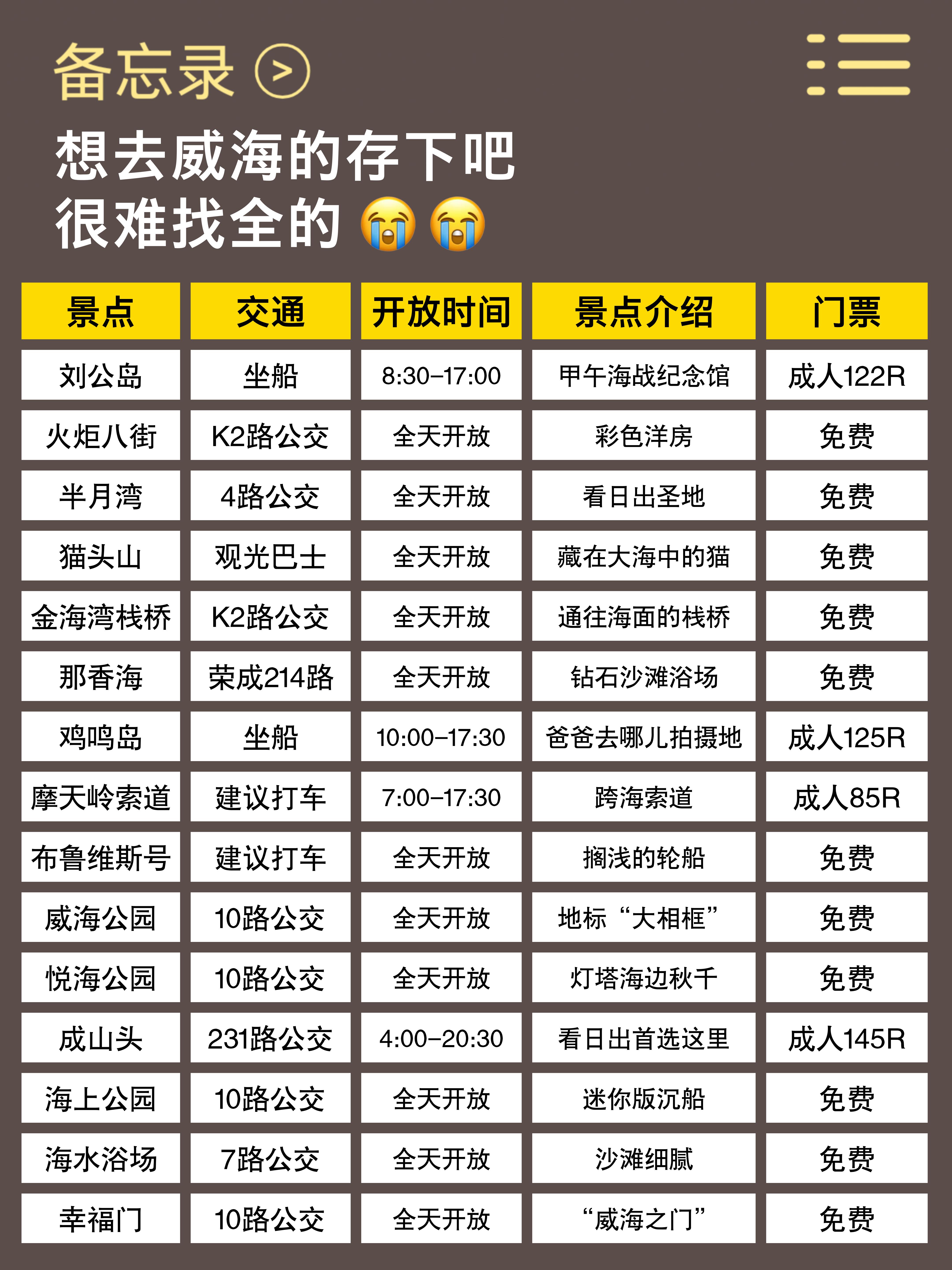 刚从威海穷游回来,虽然踩了些坑,但也摸索出一些真正实用的经验,专门整理出来给打算穷游威海的姐妹